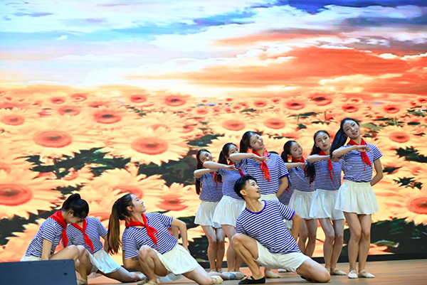 升旗儀式結束后,與會人員移步至報告廳開展了系列文藝匯演,進行了舞蹈表演、詩朗誦、獨唱、集體過政治生日等形式多樣、豐富多彩的活動,通威太陽能黨員代表作了題為《紅色聚能 光伏筑夢》的主題演講,展現了通威太陽能在黨支部發展過程中,結合自身特質和發展實際形成了黨支部發揮“紅色聚能板”的核心文化。活動在《歌唱祖國》的嘹亮歌聲中圓滿結束。
