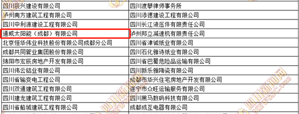 通威太陽能成都公司榮膺 “四川省誠信民營企業”稱號
