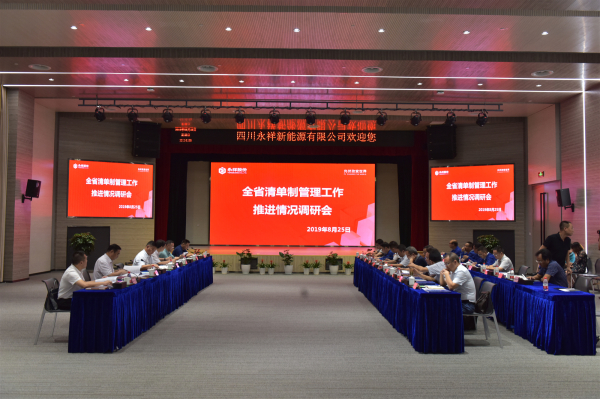 隨后,吳金爐副廳長一行組織樂山市、五通橋區相關部門及永祥新能源召開調研座談會,段董向與會領導匯報了全省清單制工作推進會的籌備情況。會上,向與會領導展示了新能源公司清單制工作推進的專題視頻。吳金爐副廳長對永祥清單制管理工作推進過程中做出的努力以及取得的成績表示肯定,并進一步就清單制工作相關推進工作的具體細節提出了建議和要求。