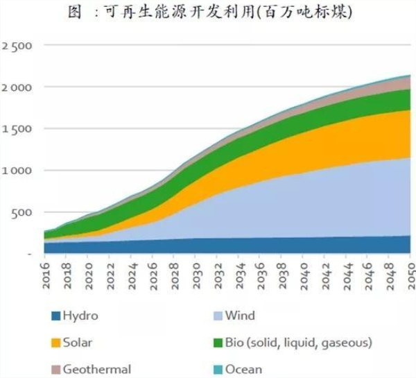 然而,根據(jù)國家可再生能源中心去年發(fā)布的《中國可再生能源展望 2018》的報(bào)告顯示,2020年中國化石能源消費(fèi)總量將達(dá)到頂峰,2035年之前將穩(wěn)步下降,煤炭在發(fā)電和工業(yè)部門的能源消費(fèi)比例會(huì)持續(xù)縮減。下個(gè)十年中國將迎來光伏與風(fēng)電大規(guī)模建設(shè)高峰。新增光伏裝機(jī)量約80-160 GW/年,新增風(fēng)電裝機(jī)量約70-140 GW/年。