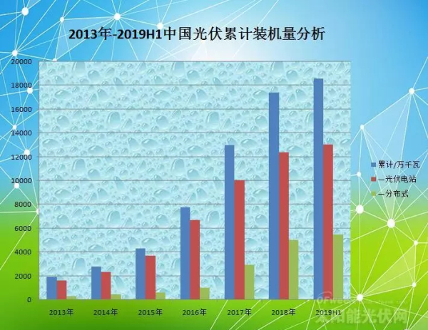 近日,國家能源局發(fā)布了2019年上半年光伏發(fā)電建設(shè)運(yùn)行情況,數(shù)據(jù)顯示,截至2019年6月底,全國光伏發(fā)電累計(jì)裝機(jī)185.59GW,同比增長20%,新增11.4GW。其中,集中式光伏發(fā)電裝機(jī)130.58GW,同比增長16%,新增6.82 GW;分布式光伏發(fā)電裝機(jī)55.02 GW,同比增長31%,新增4.58 GW。