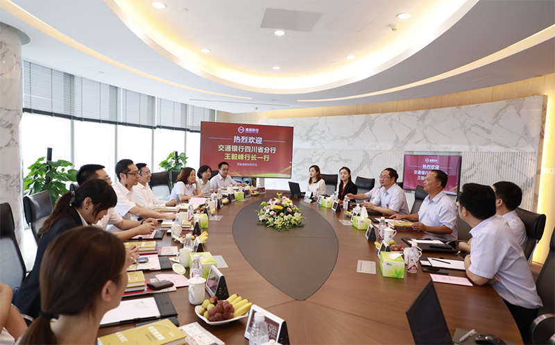 8月19日,交通銀行四川省分行行長王毅峰一行蒞臨通威考察,通威集團董事局劉漢元主席熱情接待并座談,通威股份副董事長嚴虎陪同接待。