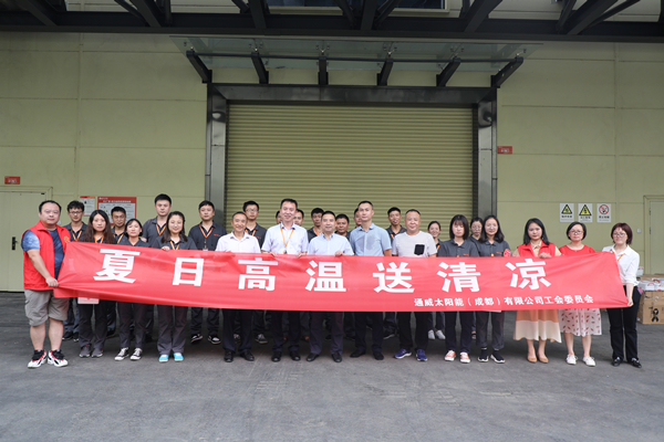 炎炎夏日,驕陽似火,持續的高溫不斷攀升。通威太陽能成都公司一線職工頂著高溫、冒著酷暑,堅守在生產崗位。8月13日,雙流區總工會黨組書記、常務副主席姜忠勇,副主席周克奎等領導一行走進通威太陽能成都公司開展高溫送清涼活動。通威太陽能成都公司工會副主席翟緒錦熱情接待。