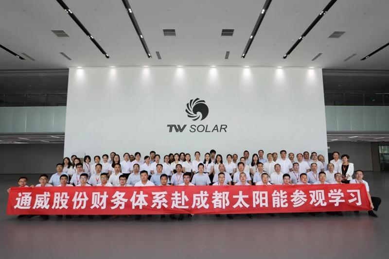 財務(wù)體系參會人員參觀通威太陽能智能制造生產(chǎn)車間