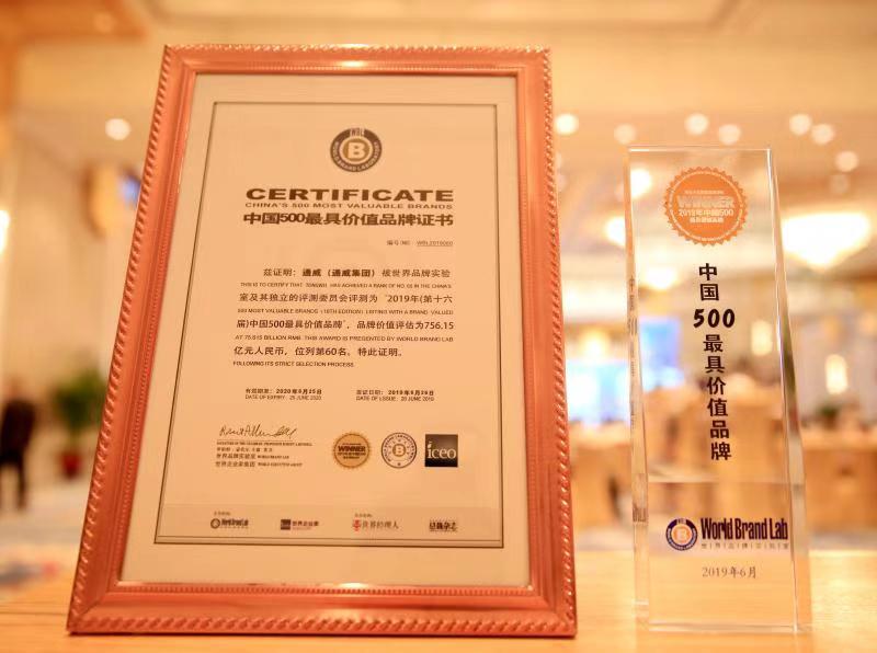2019年通威品牌價值突破756億