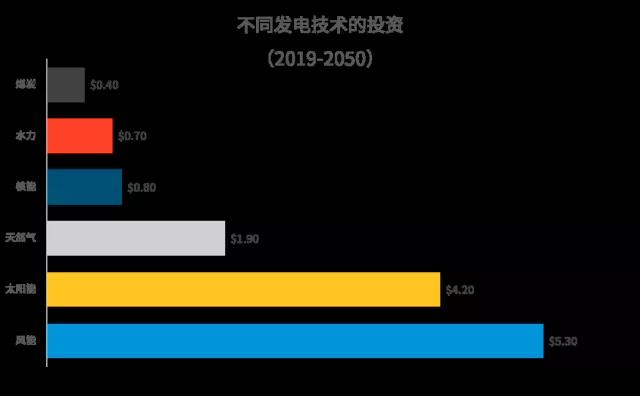風能與太陽能的投資將分別達到5.3萬億美元和4.2萬億美元
