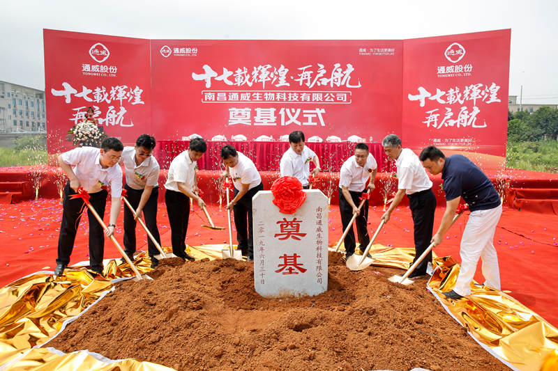 6月30日,以“十七載輝煌,再啟航”為主題的南昌通威生物科技有限公司年產(chǎn)50萬(wàn)噸飼料生產(chǎn)項(xiàng)目奠基儀式,在江西南昌市進(jìn)賢縣經(jīng)濟(jì)開(kāi)發(fā)區(qū)隆重舉行。進(jìn)賢縣經(jīng)濟(jì)開(kāi)發(fā)區(qū)黨工委書(shū)記傅廣華、進(jìn)賢縣發(fā)改委主任胡文卿、進(jìn)賢縣經(jīng)濟(jì)開(kāi)發(fā)區(qū)管委會(huì)主任吳佑民、進(jìn)賢縣商務(wù)局局長(zhǎng)吳濤、通威股份副總裁兼華中一區(qū)總裁沈金竹、軍山湖生態(tài)農(nóng)業(yè)有限公司董事長(zhǎng)李肖飛、南昌通威生物科技有限公司總經(jīng)理蔡福強(qiáng)出席儀式,近200位各界嘉賓及南昌通威精英團(tuán)隊(duì)共同見(jiàn)證新廠奠基。