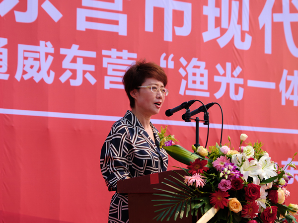 通威集團禚玉嬌總裁對各位嘉賓的到來表示感謝,并表示,通威集團擁有37年的農業發展歷史和13年的新能源產業積淀。通威依托農業及新能源產業優勢,充分整合資源,獨創漁光一體產業園區模式,將農業、光伏產業、休閑觀光業有機融合,整合多層次資源形成具有多元化產業帶的特色產業園區,在全國各地已建立起漁光一體特色產業園區超過40個,譜寫了綠色生態發展的漁光新曲。東營處于連接中原經濟區與東北經濟區、京津唐經濟區與膠東半島經濟區的樞紐位置,核心資源觸手可及。通威將按照“產業升級、提質增效”的發展思路,引入智慧漁業技術,開展“光伏發電+海參養殖產業”模式和內循環水海鱸養殖模式,開發建設集光伏發電、漁業養殖、休閑觀光為一體的“漁光一體”生態園區,屆時,將推動東營生態農業轉型升級,助力地方經濟發展,打造出一張亮眼的綠色生態產業園區名片。