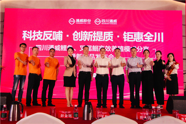5月22日,由四川通威主辦的鯉魚(yú)、叉尾鮰高效養(yǎng)殖模式分享及新品發(fā)布會(huì)在樂(lè)山隆重舉行。大會(huì)以“科技反哺 創(chuàng)新提質(zhì) 鉅惠全川”為主題,邀請(qǐng)行業(yè)精英,經(jīng)銷(xiāo)商、養(yǎng)殖大戶等共聚一堂,展示前沿成果,共謀產(chǎn)業(yè)發(fā)展。通威股份華西片區(qū)總裁成軍和、通威股份水產(chǎn)研究所副所長(zhǎng)喬永剛、四川通威飼料有限公司總經(jīng)理彭金鋼、成都通威魚(yú)有限公司基地部總經(jīng)理陳雪剛等蒞臨現(xiàn)場(chǎng)。