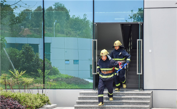 隨后,公司立即啟動火災預警與III級響應,消控室值班員立即啟動檔案室氣體自動滅火系統、行政樓聲光報警系統、消防排煙系統、消防廣播系統,并安排警戒人員、秩序隊員在行政樓外警戒防守,禁止無關人員進入行政樓。此時,行政樓全體工作人員在部門安全員的指引下,從最近的逃生通道火速撤離行政樓逃至升旗廣場。