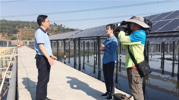 5月13日至19日, 央視七套《科技苑》及《致富經(jīng)》欄目組再次聚焦通威,并前往四川西昌、自貢兩地拍攝取材,深度報(bào)道通威設(shè)施化漁業(yè)養(yǎng)殖在“漁光一體”創(chuàng)新商業(yè)模式中的應(yīng)用。四川省水產(chǎn)技術(shù)推廣總站站長(zhǎng)鄧紅兵、通威股份總裁助理劉輝芬在現(xiàn)場(chǎng)接受了央視記者專訪。
