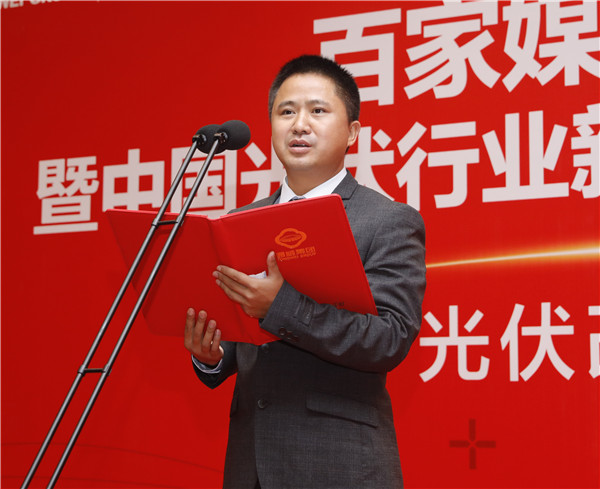 聯盟成立儀式上,作為發起媒體代表,北京財鷹文化CEO、聯盟執行秘書長、黑鷹光伏總編輯李文友宣讀《中國光伏行業新媒體聯盟倡議書》,發起六點倡議: