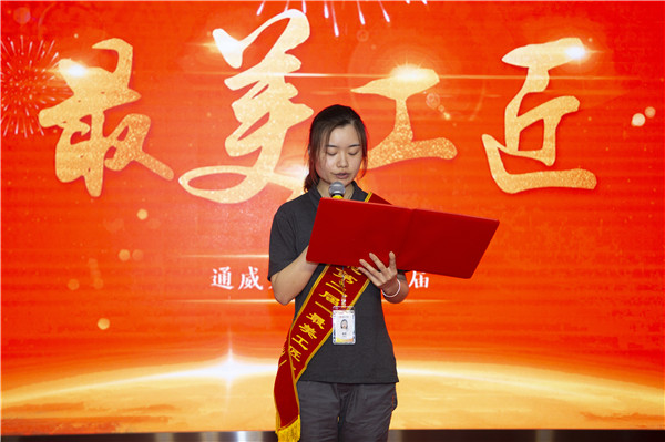 頒獎活動現(xiàn)場,“最美工匠”們在掌聲中身披綬帶登上領獎臺,被授予榮譽獎杯、榮譽證書及現(xiàn)金獎勵。兩地“最美工匠”代表潘雪、何慧分別發(fā)表感言,他們表示在今后的工作中將再接再厲,不斷學習新知識,掌握新技能,提高作業(yè)水平,為公司做出新的貢獻。