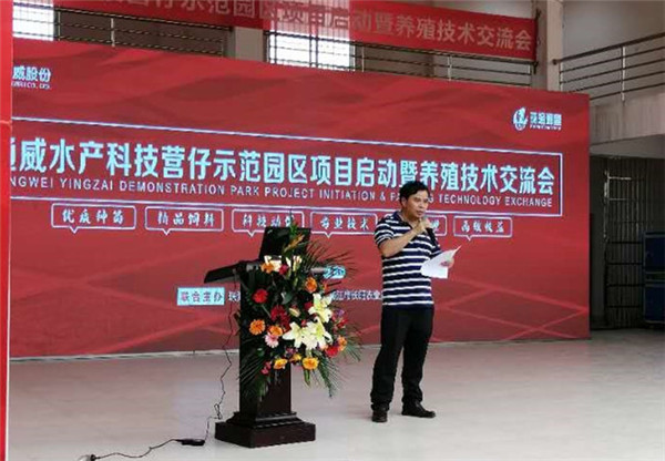 會上,通威股份蝦特料片區(qū)總裁劉明鋒就示范園項目作具體介紹,并回顧了通威37年發(fā)展歷程以及“漁光一體”創(chuàng)新商業(yè)模式的戰(zhàn)略優(yōu)勢。劉總表示,通威股份蝦特料片區(qū)將總結(jié)并借鑒通威在江蘇、湖北等地發(fā)展大水面園區(qū)的成功經(jīng)驗,全力以赴打造營仔示范園區(qū),利用通威產(chǎn)品力優(yōu)勢、技術(shù)實力及專業(yè)服務(wù),為入駐園區(qū)的合作伙伴提供一對一幫扶,降低養(yǎng)殖風(fēng)險,全面提升養(yǎng)殖終端盈利能力!