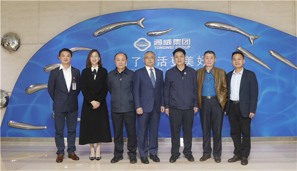 馬學東秘書長、梁建疆董事長一行參觀了集團體驗中心,全面了解了通威37年發展歷程及農業、新能源兩大核心主業發展現狀,并對通威“漁光一體”創新模式、通威智能制造領先性與獨具特色的通威企業文化及品牌建設工作表示高度贊賞。