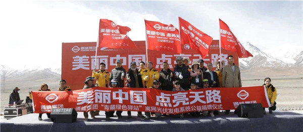 2018年5月,通威集團(tuán)積極響應(yīng)習(xí)近平總書記在十九大報(bào)告中“加快生態(tài)文明體制改革,建設(shè)美麗中國”的號召,充分發(fā)揚(yáng)企業(yè)社會責(zé)任,發(fā)起“美麗中國,點(diǎn)亮天路”主題活動,為“青藏綠色驛站”公益捐贈三套離網(wǎng)光伏發(fā)電系統(tǒng),照耀4500米海拔“無人區(qū)”,讓光伏改變世界!