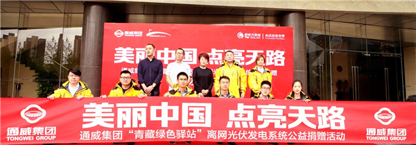 2018年5月,通威集團發起“美麗中國,點亮天路”主題活動,為“青藏綠色驛站”點亮明燈,公益捐贈三套離網光伏發電系統,照耀4500米海拔“無人區”,讓光伏改變世界!