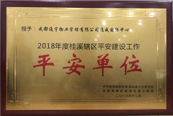 通宇物業榮獲“2018年度桂溪轄區平安建設工作平安單位”榮譽稱號