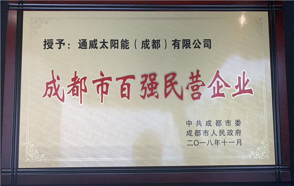 通威太陽能榮獲成都市百強民營企業(yè)殊榮