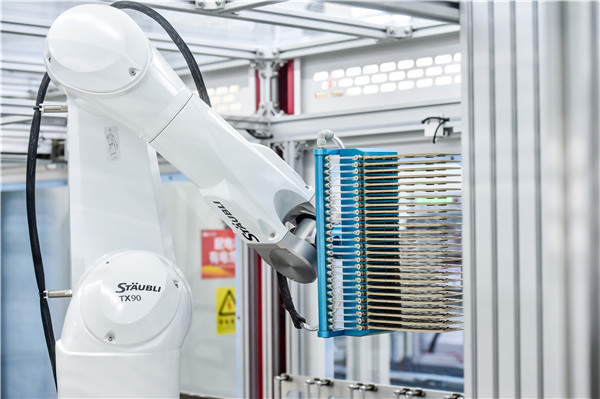 2018年10月22日,通威太陽能成都三期第一片“智能制造”高效晶硅電池片順利下線,其轉(zhuǎn)換效率達(dá)到22.05%。車間內(nèi)共16條全封閉的智能制造高效晶硅電池片自動化生產(chǎn)線,均由自動抓取的機械臂、智能運輸機器人組成,這是通威太陽能成都基地繼二期項目采用全自動無人生產(chǎn)制造后的第二個無人化車間、智能化工廠。
