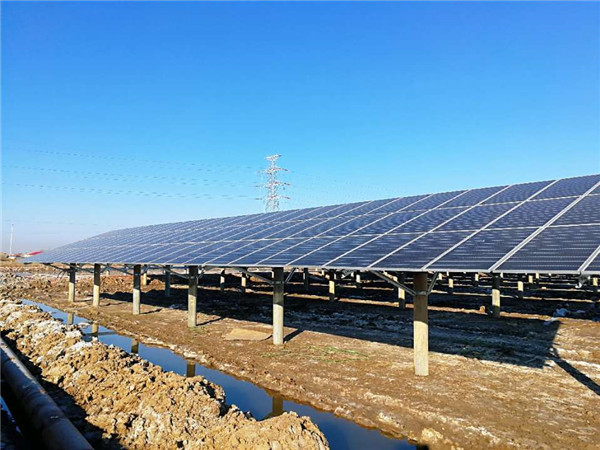 因地制宜、依法施工、合理制定施工方案——針對地勢低平,多鹽灘、鹽水沼澤和濕地,且多為淤泥及淺水的情況下,項目因地制宜,采取向魚塘排水掩蓋淤泥,配合采用泡沫平臺形式組裝搭建施工平臺以便于施工。不但提高了施工效率,優化施工結構,降低了施工難度。同時解決了支架和組件等材料的進場倒運問題,更是降低了支架安裝運輸過程中與淤泥直接接觸發送銹蝕的風險。正是這種不斷進取的精神,該項目僅用47天即實現了天津馬棚口項目的成功并網,同時保證了又一個通威的優質項目。