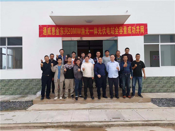 2017年11月,泗洪縣光伏應用領跑者基地被國家能源局定為10家第三批光伏領跑基地之一。基地位于西南崗片區天崗湖鄉天崗湖,及峰山鄉的香套湖區域,光伏鉅陣占地1.539萬畝,規劃總裝機規模100萬千瓦,總投資約40億元。通過評優,通威與晶科聯合中標200MW項目。基地光伏電站結合生態高效漁業養殖模式綜合發展,打造集光伏先進技術示范、特色漁業養殖相結合的示范基地。繼2018年9月30日完成階段性并網任務后,項目于2019年元旦前完成全容量并網,獻禮歲末。項目建成后,將貢獻年發電量2.6億度,每年可節約標煤8.6萬噸,減少二氧化碳排放約19.7萬噸,泗洪項目工期短、體量大、任務重,但在泗洪縣委縣政府的大力支持下、在項目基地辦的帶領中,有各施工單位的全力配合,有集團、股份總部領導的指導,通威新能源科技(北京)有限公司全體同仁精誠團結,克服重重難點成功并網。