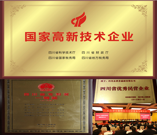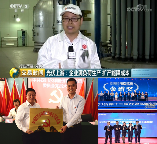 1月3日,永祥多晶硅榮獲四川省科技進步二等獎;1月22日,四川永祥股份有限公司榮獲“國家高新技術企業(yè)”稱號;9月21日,永祥多晶硅榮獲四川省專利獎一等獎;11月20日,四川省民營經(jīng)濟健康發(fā)展大會上,永祥再次榮獲“優(yōu)秀民營企業(yè)”重磅榮譽;11月23日,在樂山市工業(yè)暨民營經(jīng)濟健康發(fā)展大會上,通威股份董事、永祥股份董事長兼總經(jīng)理段雍應邀出席會議并作主題發(fā)言,永祥股份榮獲“新認定的國家高新技術企業(yè)2017年度稅收入庫收入首上臺階獎金50萬元”獎勵;此外,11月,永祥多晶硅先后獲得2018年度“光能杯”CREC評選年度“優(yōu)秀光伏材料企業(yè)”、“中國好光伏”2018年度“最佳光伏材料供應商”、2018年“北極星杯”“最受歡迎十大光伏原材料及輔料品牌”、2018“科維杯”O(jiān)Fweek2018“卓越光伏材料商”等殊榮;2018年,段雍董事長先后獲評“年度環(huán)保人物”、“優(yōu)秀中國特色社會主義事業(yè)建設者”稱號。這些榮譽的取得,有力地彰顯了公司的影響力和發(fā)展活力。