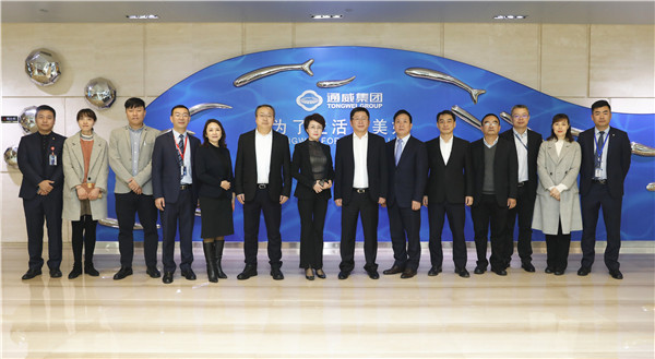 葉向峰行長一行首先參觀了通威集團(tuán)體驗(yàn)中心,詳細(xì)了解了通威36年穩(wěn)健快速發(fā)展歷程,對通威農(nóng)業(yè)、新能源綠色雙主業(yè)發(fā)展成果表示高度贊賞。