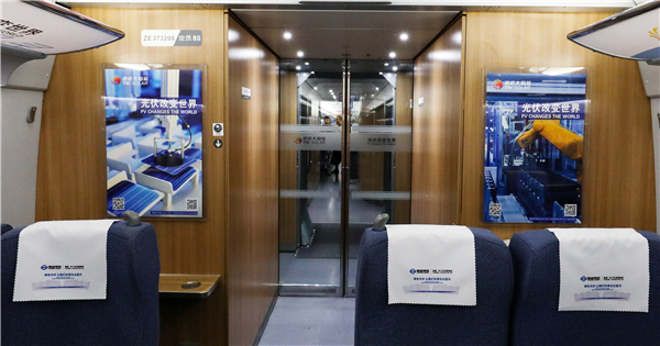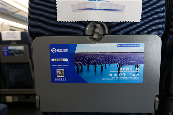本次通威集團冠名的高鐵專列,在車身、內外車門、行李架、頭巾和小桌板等位置均印有“通威 為了生活更美好”以及集團及旗下新能源產業鏈的企業標識和廣告語,行李架上也順次印上了“通威新能源 光伏改變世界”、“通威漁光一體 漁電環保三豐收”的標識。未來一年,“通威號”專列將每天往返于京滬,穿越京津冀和長三角兩大經濟區,對外展現通威國際化品牌形象,不斷傳播和強化通威“全球領先的綠色能源和綠色食品供應商”的企業愿景,持續傳遞通威引領綠色發展、推動全球能源革命的強大影響力。