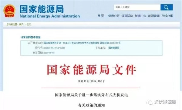 2014年9月2日,國(guó)家能源局發(fā)布《關(guān)于進(jìn)一步落實(shí)分布式光伏發(fā)電有關(guān)政策的通知 》,給予戶用光伏全額上網(wǎng)補(bǔ)貼。