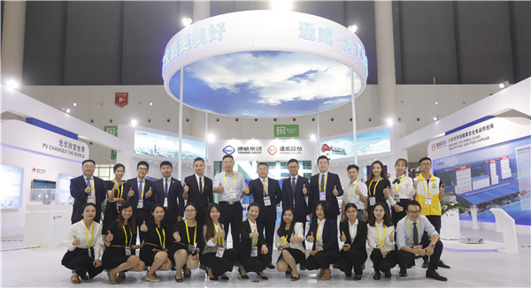 本次通威展廳面積達450m2,擁有簡約高端的現代化設計、大氣磅礴的展廳布局,現場通過視頻影像、最新產品展示、VR等多媒體形式集中呈現了通威農業、新能源產業板塊及適度多元板塊。特別突出地展現了通威進入光伏行業十年來,所構建的擁有自主知識產權的完整光伏新能源產業鏈,吸引了眾多蒞臨“一帶一路”合作館的參展嘉賓駐足參觀和交流。