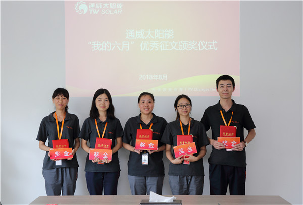 近日,通威太陽能(合肥、成都)有限公司“我的六月”征文比賽頒獎儀式分別在合肥、成都兩地順利舉行。從合肥、成都兩地共計百余篇參賽稿件中甄選出的12篇優秀作品獲獎。