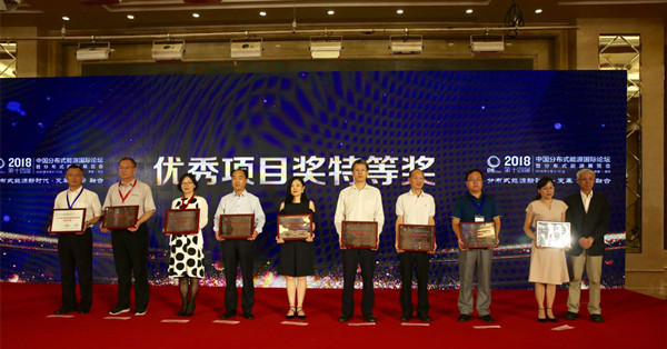 2018年8月8-10日,由中國能源研究會分布式能源專業委員會、中國能源網研究中心主辦,中國能源網承辦的2018(第十四屆)中國分布式能源國際論壇在武漢召開。通威集團禚玉嬌總裁榮獲“2018年度中國分布式能源杰出貢獻人物獎”,通威廣西欽州康熙嶺“漁光一體”項目因良好的經濟、社會和環保效益,榮獲“2018年度中國分布式能源優秀項目特別獎”。通威惠金新能源副總經理邵國軍代表領獎。此次獲獎,充分展現了通威“漁光一體”的行業影響力,體現了業界對通威在光伏電站規劃、建設及運營方面的高度認可。