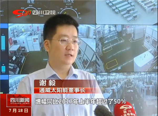 通威太陽能作為四川省經濟發展的一個亮點企業接受了采訪,報道指出,通威太陽能上半年產能超過2800MW,增幅同比2017年上半年超過50%,成為拉動工業發展的新動能。