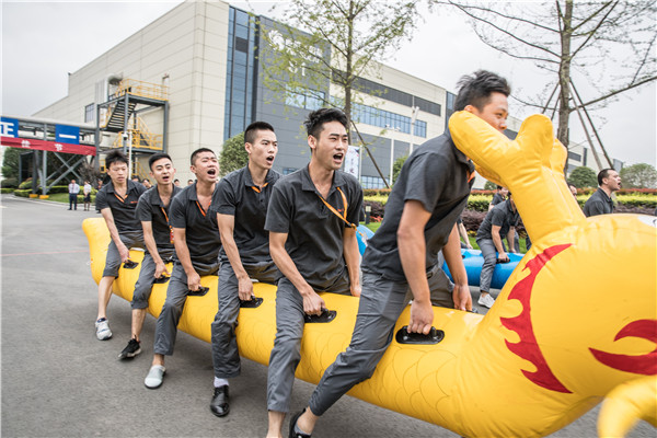 端午節當天一早,隨著裁判員的一聲令下,成都公司廠區比賽正式開始。參賽選手6人一組,排成一列,兩手拉緊龍舟上的固定把,齊心協力將龍舟“劃向”終點。比賽看似簡單,但要想贏得比賽,還要看隊員們的團隊協作能力。