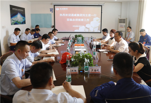 隨后,劉主席視察了永祥多晶硅還原工段,永祥硅材料生產車間與永祥新材料廠區,聽取了永祥股份各公司在安全環保管理、設備管控、班組建設、阿米巴經營推進、生產工藝技術專項攻關等相關工作匯報。