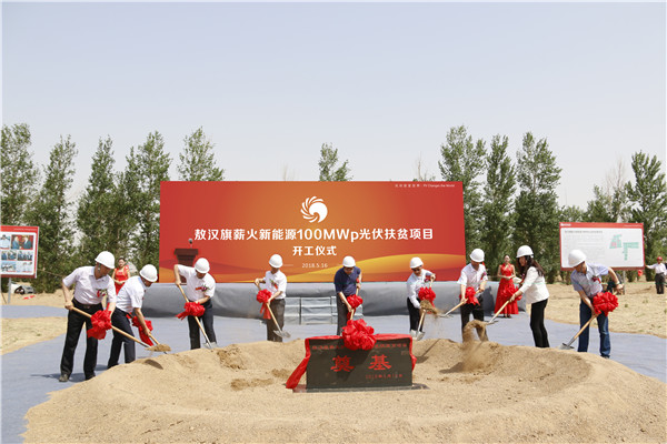 5月16日上午,敖漢旗薪火新能源100MWp光伏扶貧項目開工儀式在內蒙古自治區赤峰市敖漢旗木頭營子鄉東灣子村舉行。赤峰市投資促進局局長劉濟朋,敖漢旗人大常委會主任張希生,副旗長任璽,旗政協副主席李麗,通威新能源(深圳)有限公司總經理鄧衛平等領導出席并參加培土奠基儀式。旗發改局、經信局、國網敖漢供電公司等政府、事業單位各部門職工,敖漢旗薪火新能源有限公司的領導、職工參加儀式。