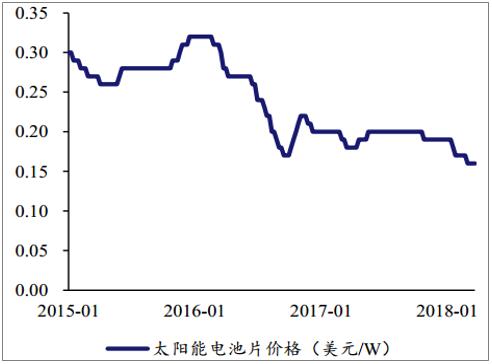 光伏電池片:從整個行業(yè)來看,產(chǎn)能呈現(xiàn)上升趨勢,2015 年至 2018 年間,太陽能電池片價格下降了 0.15美元/W,下降幅度達(dá) 50%。價格下降的動力主要來自技術(shù)進(jìn)步和上游原材料價格的下降,因此從總體上來看毛利率將保持平穩(wěn)。