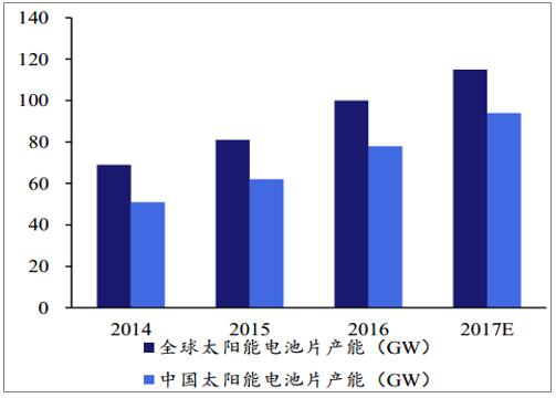 國內(nèi)規(guī)模再度創(chuàng)新高,分布式推動裝機(jī)持超預(yù)期。2017年中國光伏新增裝機(jī)53.06GW,創(chuàng)下歷史新高。主因分布式光伏快速發(fā)展,驅(qū)動行業(yè)裝機(jī)超預(yù)期。2017年光伏電站裝機(jī) 33.62GW,同比增加11%,而分布式光伏裝機(jī) 19.44GW,同比增長3.7倍,成為快速增長的細(xì)分領(lǐng)域。因中東部為負(fù)荷中心,無棄光消納問題,疊加脫硫脫硝電價較高,自發(fā)自用模式經(jīng)濟(jì)性凸顯,分布式光伏實現(xiàn)爆發(fā)式增長。