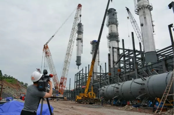 當天下午,永祥股份樂山高純晶硅及配套新能源項目建設工地緊張而忙碌,四川衛視鏡頭牢牢鎖定,現場直播了精餾塔的吊裝過程。該設備是用于高純晶硅原材料的提純使用,隨著精餾塔的吊裝,意味著新項目的生產線正式進入到了設備安裝環節。永祥股份四川新能源有限公司總經理助理羅周向記者介紹道,這條生產線是目前全球單線產能最大的高純晶硅生產線,由永祥獨立自主設計并擁有自主知識產權,預計今年9月首批世界領先的高純晶硅將在這里下線。