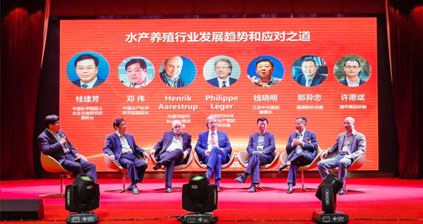 在桂建芳院士主持的圓桌對(duì)話環(huán)節(jié),中國水產(chǎn)科學(xué)研究院副院長鄧偉、丹麥拜歐瑪集團(tuán)副總裁Henrik、英國BENCHMARK控股有限公司董事、比利時(shí)INVE英偉水產(chǎn)集團(tuán)全球總裁Philippe Leger、江蘇中洋集團(tuán)董事長錢曉明、通威股份郭異忠總裁、澳華集團(tuán)總裁許愿斌等嘉賓,圍繞水產(chǎn)行業(yè)發(fā)展趨勢和應(yīng)對(duì)之道展開“論劍”,頂級(jí)嘉賓陣容帶來的新思路、新觀點(diǎn),引發(fā)現(xiàn)場熱烈掌聲。
