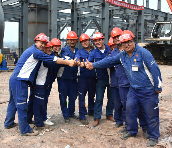 公司領(lǐng)導(dǎo)高度重視作業(yè)安全,4月16日,通威股份董事、永祥股份董事長(zhǎng)兼總經(jīng)理段雍,永祥股份副總經(jīng)理、永祥新能源總經(jīng)理李斌前往施工現(xiàn)場(chǎng)對(duì)精餾塔吊裝工作進(jìn)行了安全檢查,指出要不斷細(xì)化、完善吊裝方案,嚴(yán)格做好吊裝設(shè)備的安裝與檢查,要求各工段負(fù)責(zé)人對(duì)接縫處理的檢查、保溫質(zhì)量的驗(yàn)收工作形成妥善的點(diǎn)對(duì)點(diǎn)檢查記錄。4月19日,歷經(jīng)10天的奮斗后,在吊裝作業(yè)啟動(dòng)前,永祥新能源各部門(mén)負(fù)責(zé)人依舊絲毫不敢懈怠,及時(shí)清理障礙、排除隱患,確認(rèn)再確認(rèn)之后,才開(kāi)始吊裝作業(yè)。在吊裝設(shè)備的轟鳴聲中,第一段精餾塔以一個(gè)完美的弧線穩(wěn)穩(wěn)地安裝在了精餾塔裙座上,屹立于永祥新能源綠色硅谷中,現(xiàn)場(chǎng)隨之歡聲雷動(dòng),精餾塔吊裝圓滿完成!