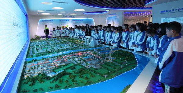 “小客人”們首先來到通威集團體驗中心參觀,李主席向大家詳細介紹了通威36年發展歷程以及通威農業和新能源雙主業所取得的卓越成就。大家饒有興致地體驗了電子投影書籍、巨幅沙盤模型、數字模擬養魚、立體環幕影院等互動設備與環節,充分感受了通威智造的科技感與未來感,更直觀、更系統地加深了對通威的認識。
