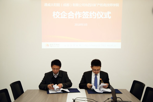 通威太陽能成都公司與四川礦產機電技師學院簽署《校企合作協議書》