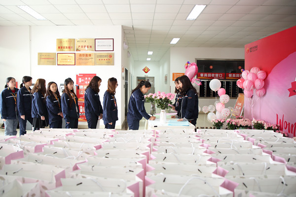 節日當天,在兩地公司行政部同事的精心準備之下,鮮花與節日驚喜禮品派送活動于員工餐廳拉開了序幕。合肥公司行政部同事為全廠女員工發放電影對票;與此同時,成都公司行政部同事也為精心準備了節日禮品。一朵朵嬌艷欲滴的鮮花、一份份情真意切的禮物送到女員工們的手中,她們在收獲滿滿祝福的同時更體會到公司的真切關懷。