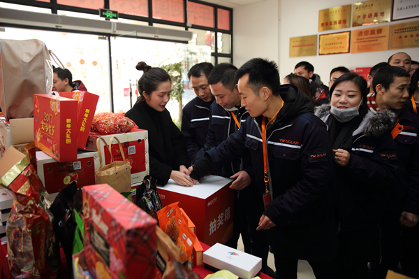 2月9日,距離中國傳統大年還有7天時間,為了讓員工提前感受到春節的歡樂與溫馨,通威太陽能開展了熱鬧非凡的“新春年貨”大派送活動。