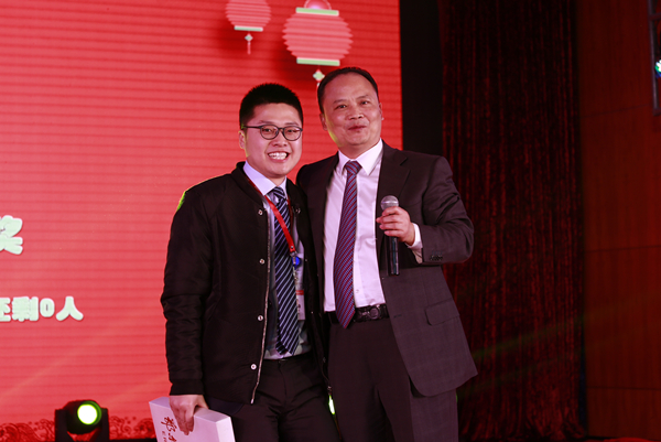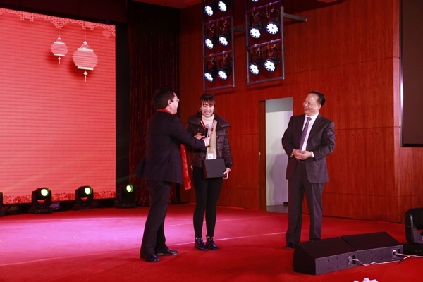 劉主席為獲得終極大獎的員工頒發價值10888元的華為Mate10 Pro保時捷版手機