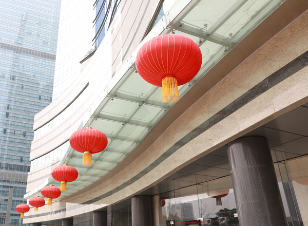 大廳的中國結元素滿溢著節(jié)日的氣氛