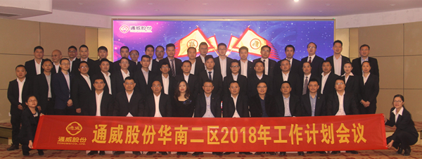 1月20-21日,通威股份華南二區2018年工作計劃會議在廣西南寧圓滿召開。通威股份郭異忠總裁、通威股份總裁助理兼營銷總監喻明波、通威股份華南二區總裁盧運進、通威股份市場營銷部副部長賈光文、通威大學執行副校長張紅纓等出席,華南二區各分子公司總經理、中干悉數參會。本次會議旨在深入剖析華南二區2017年工作中的不足,全面貫徹落實股份“戰略聚焦 揚長砍短”的指導方針,明確2018年戰略規劃。