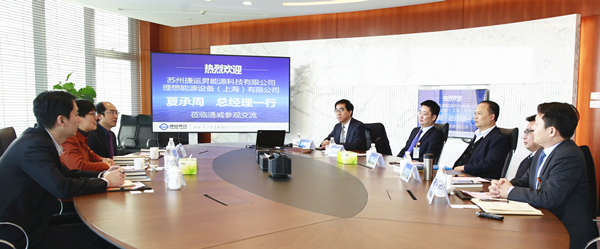 1月16日,理想能源設備(上海)有限公司副總裁奚明、蘇州捷運昇能源科技有限公司總經理夏承周一行蒞臨通威參觀交流,十一屆全國政協(xié)常委、通威集團董事局劉漢元主席,通威太陽能董事長謝毅熱情接待并座談。